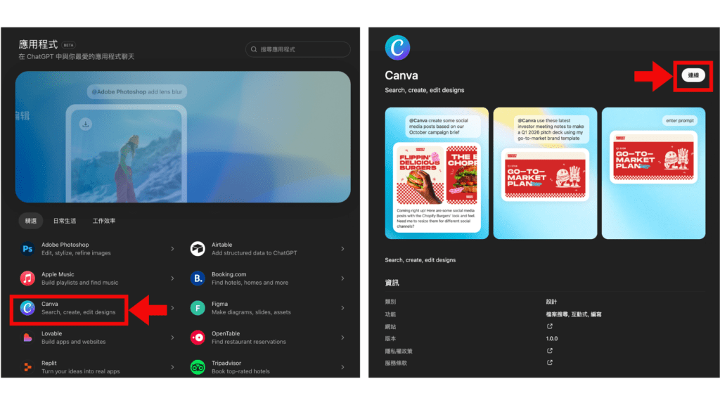 方法二:將 ChatGPT 串接 Canva 應用程式