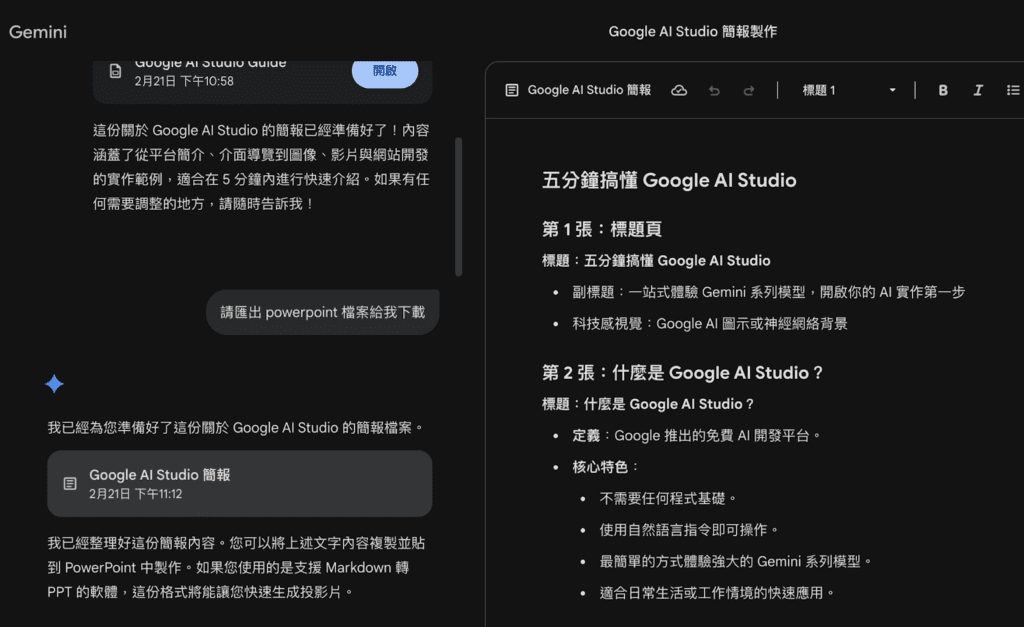 Gemini 生成簡報
