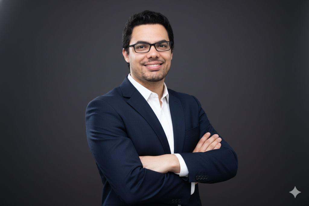 ・背景:乾淨的深色背景,整體營造出真實的專業攝影棚拍攝氛圍,照片應具有清晰的人物細節和自然的景深效果,如同用相機實拍的效果,適合用於履歷或專業場合