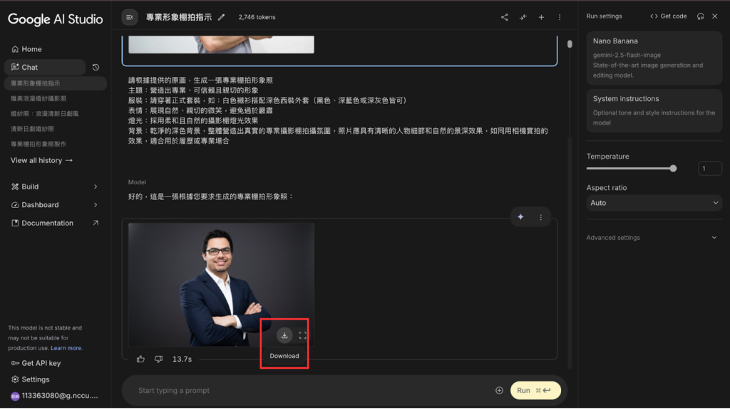 - 前往 Google AI Studio: