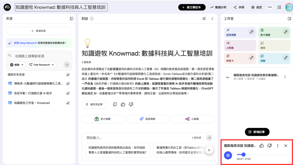 如果你一直想嘗試製作 Podcast 卻不知道該如何開始,不如讓 NotebookLM 擔任你的小幫手吧!